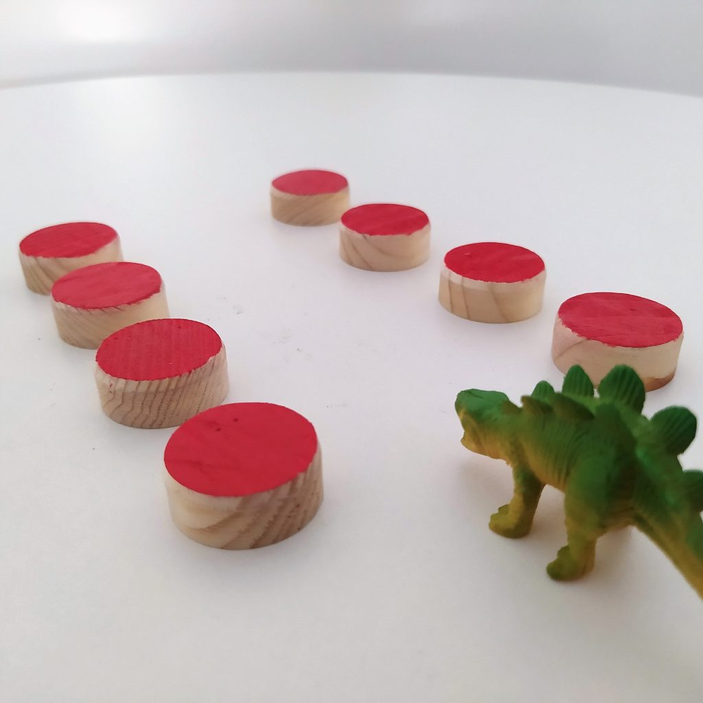 Da dem Dino kein Klötzchen den Weg versperrt, lässt sich erkennen, dass die Zahl 8 gerade ist. Die 9 hingegen ist eine ungerade Zahl, denn das letzte Klötzchen liegt mittig. Der Test funktioniert natürlich auch mit Autos oder anderen Figuren, die das Kinderzimmer hergibt.